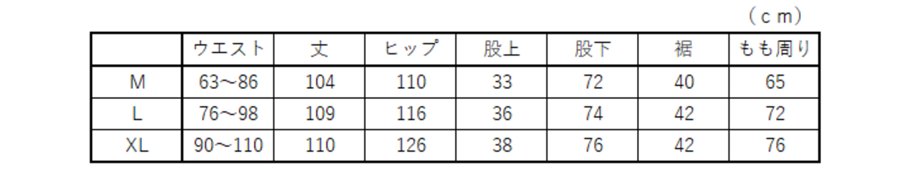 サイズ:XL ウエスト: 90~110cm ヒップ : 126cm 股上: 38cm 股下: 76cm もも周り: 76cm すそ周り: 42cm 総丈: 110cm